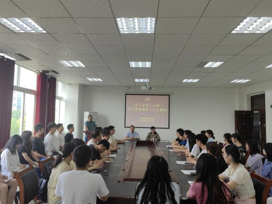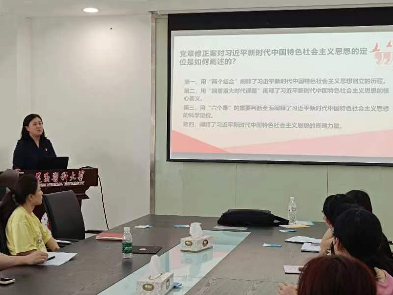 6月20日下午在科研楼504,麻醉医公司党委副书记叶栋恒围绕党章中对习近平新时代中国特色社会主义思想的定位详细解读了党章建设史和党的二十大对党章作出的修改,为党员更好理解党章的精神实质、把握党章一系列规定要求提供了参考。太阳集团tcy8722教工党支部副书记张宇结合自身科研求学经历对开展主题教育的意义和要求,对推动党和国家事业发展,具有重要意义方面进行了深入解读。
