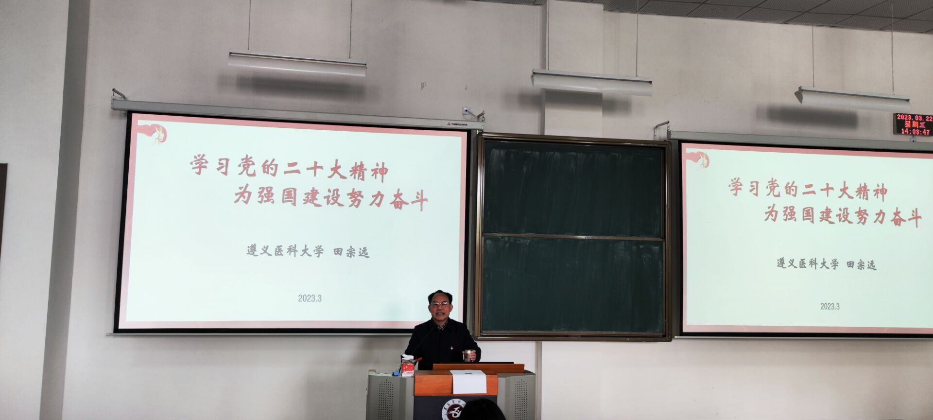 为深入学习宣传贯彻党的二十大精神,用党的初心使命感召青年学子,3月22日下午在第三教学楼十八阶梯,太阳集团tcy8722邀请到公司关工委副主任田宗远教授为广大青年学子作了一场主题为“学习党的二十大精神,为强国建设努力奋斗”的宣讲报告。麻醉医公司党委副书记叶栋恒,员工第一党支部副书记韦锋及20级全体同学参加宣讲。