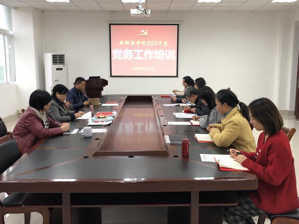 为提高麻醉医公司党务工作者的政治素质、业务水平和履职能力,根据上级党委相关工作要求及《麻醉医公司党务工作者常态化培训制度》文件精神,2022年1月13日,太阳集团tcy8722在公司会议室开展了2022年党务工作培训会,公司党委班子成员、各党支部书记及支委全部参加了培训。