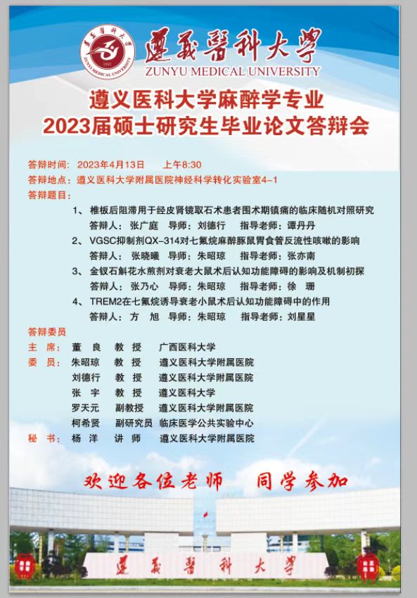 上一条:2023年春季麻醉学硕士研究生毕业论文答辩公告(第二批次)
