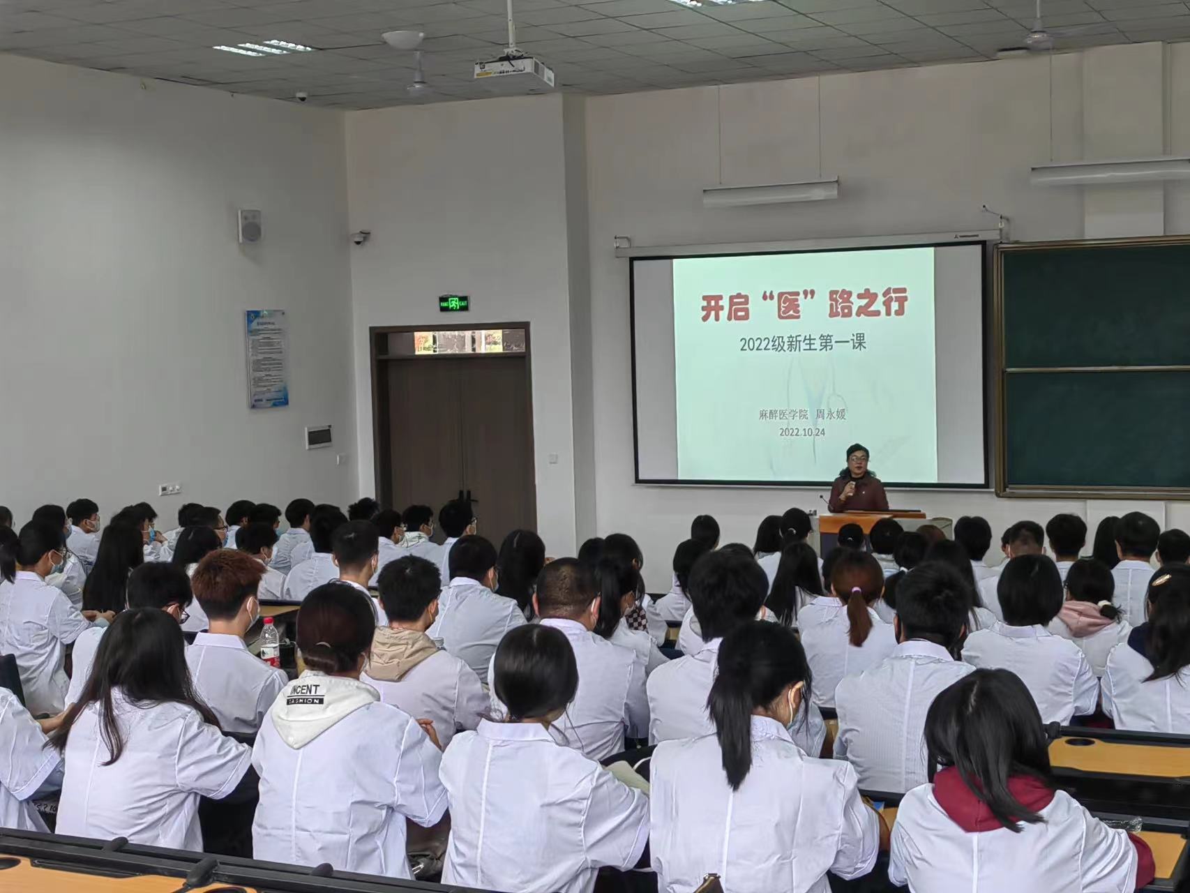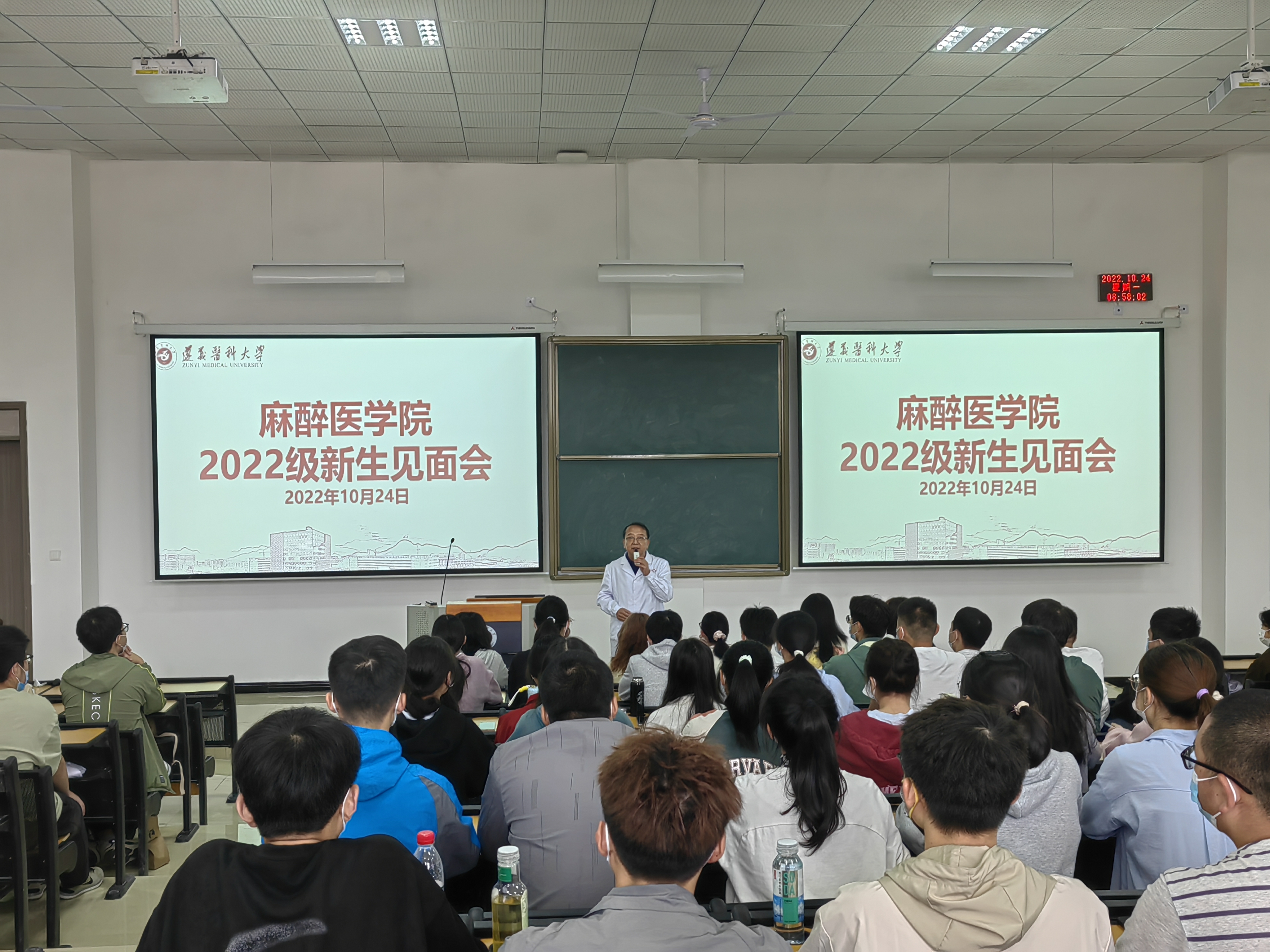 10月24日上午,2022级本科新生见面会暨开学第一课在二十阶梯顺利召开,麻醉医公司党委书记周永媛、经理刘兴奎、员工第二党支部书记陈俊、员工第一党支部副书记韦锋、办公室负责人张超、辅导员王唯及2022级太阳集团tcy8722全体本科新生参加。见面会由麻醉医公司党委副书记叶栋恒主持。