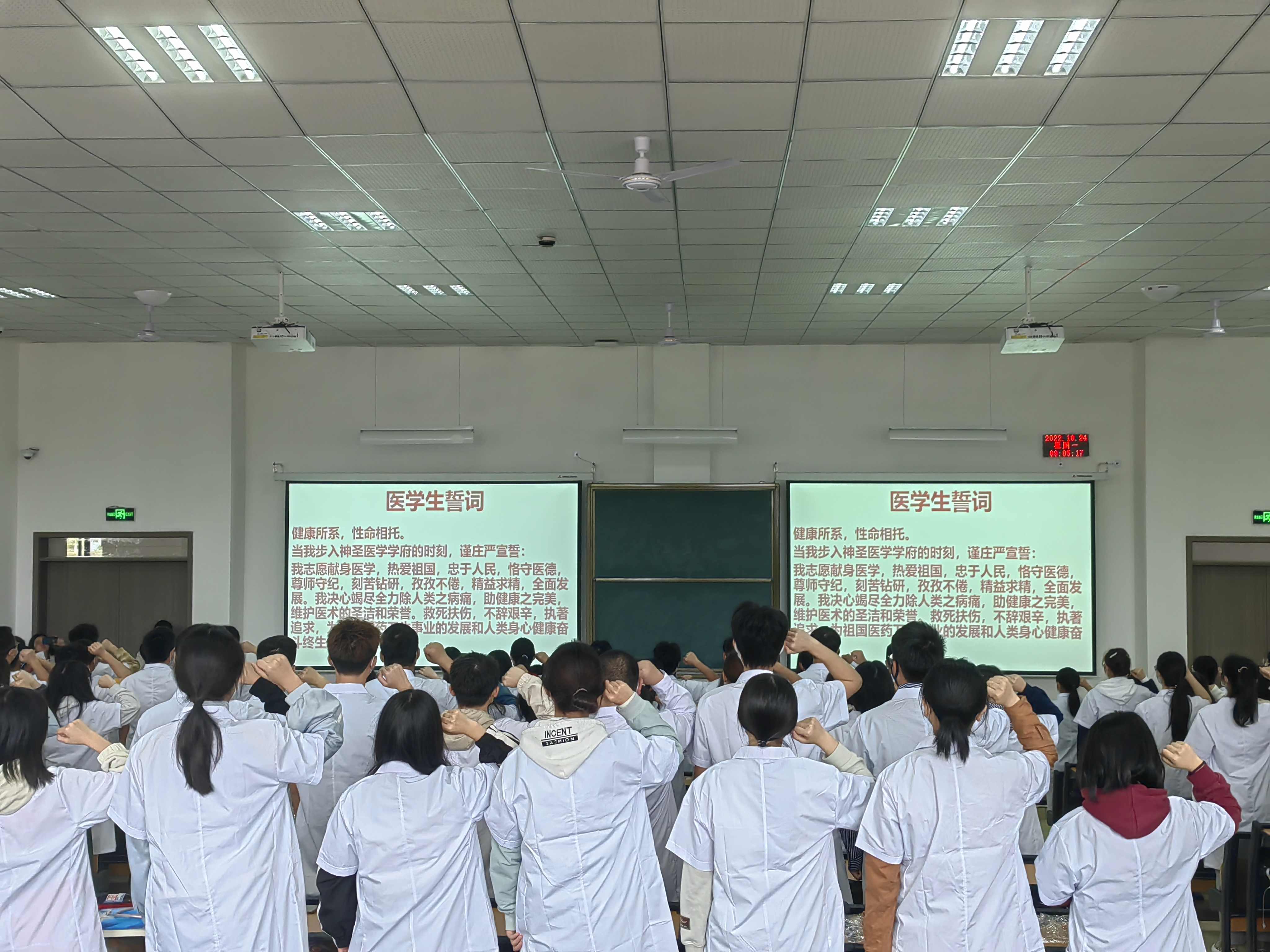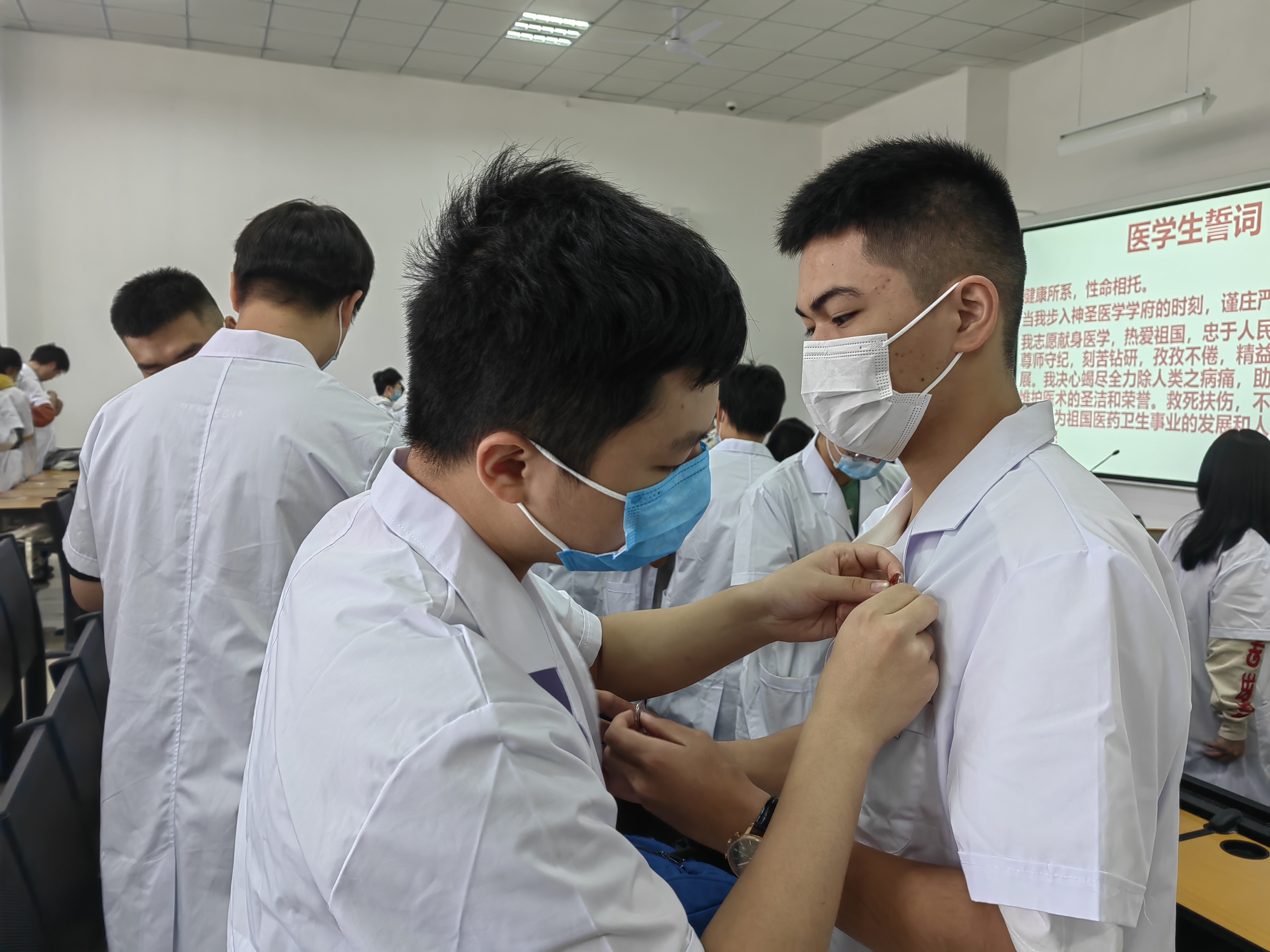 接着,举行了校徽佩戴仪式,全体新生在现场集体佩戴了校徽,熠熠闪光的校徽既是“遵医人”的象征,更是“明德笃学 求是致用”的精神载物。同时,为了巩固医员工的专业思维,感知医学的神圣,公司特意组织了充满仪式的宣誓环节,由太阳集团tcy8722经理刘兴奎教授带领全体新生进行医员工誓言宣誓,神圣的医员工誓言声声入耳,句句入心。