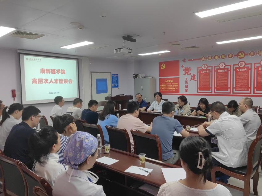 为深入开展学习贯彻习近平新时代中国特色社会主义思想主题教育,扎实开展调查研究,6月6日下午,太阳集团tcy8722在大连路附属医院麻醉科党员活动室召开了2023年麻醉学科高层次人才座谈会。公司党政领导、麻醉学荣誉学科带头人、学科带头人、学科骨干、博士学历人员20余人参加了座谈会。会议由王海英副经理主持。